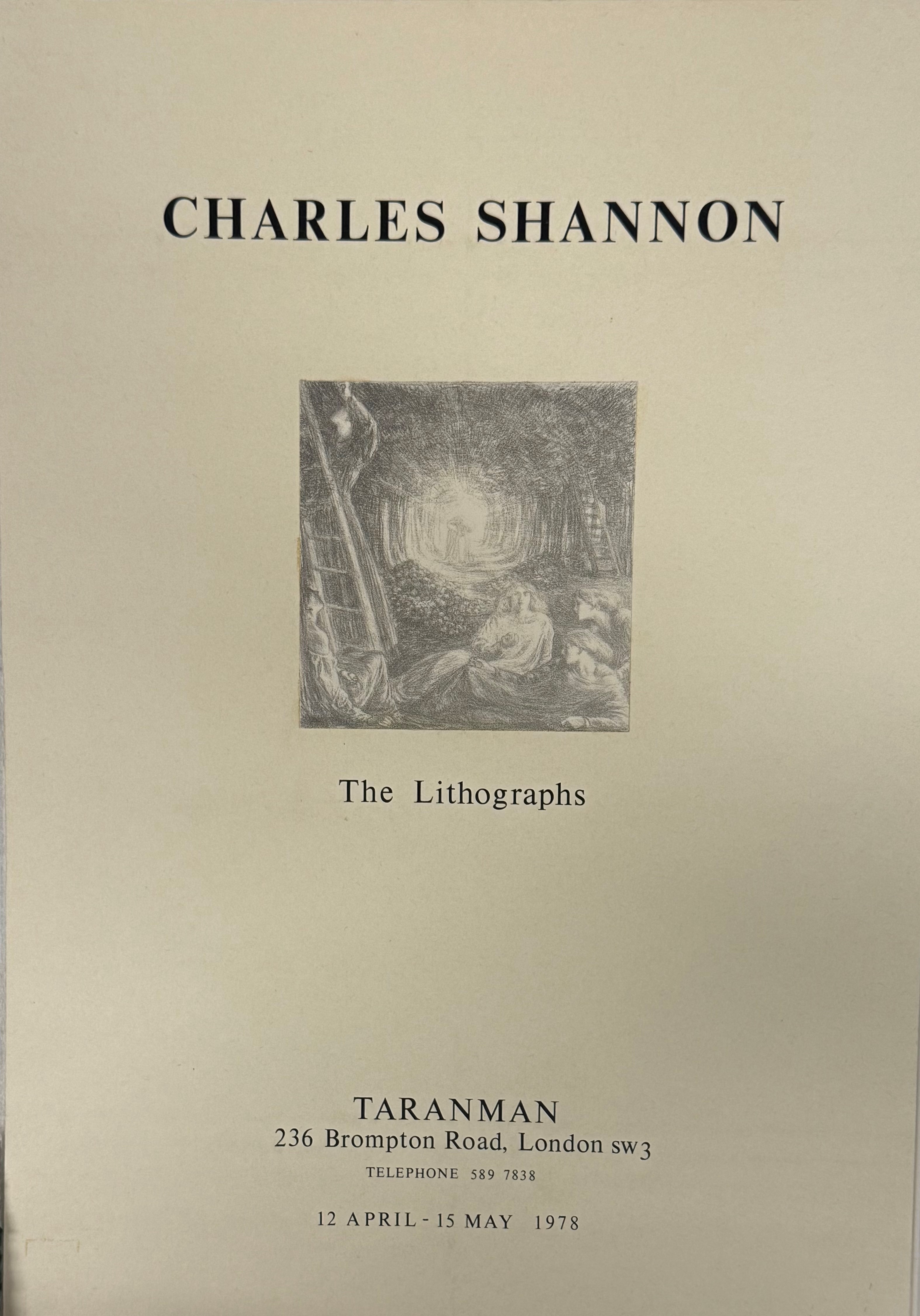 7/A - CHARLES SHANNON - Catalogue, 1978 compiled by Paul Delaney - Preface by Fenella Crichton - Cover illustration A Lithograph in White Line R5 ii (1891) - – MCMLXXVIII TARANMAN LONDON