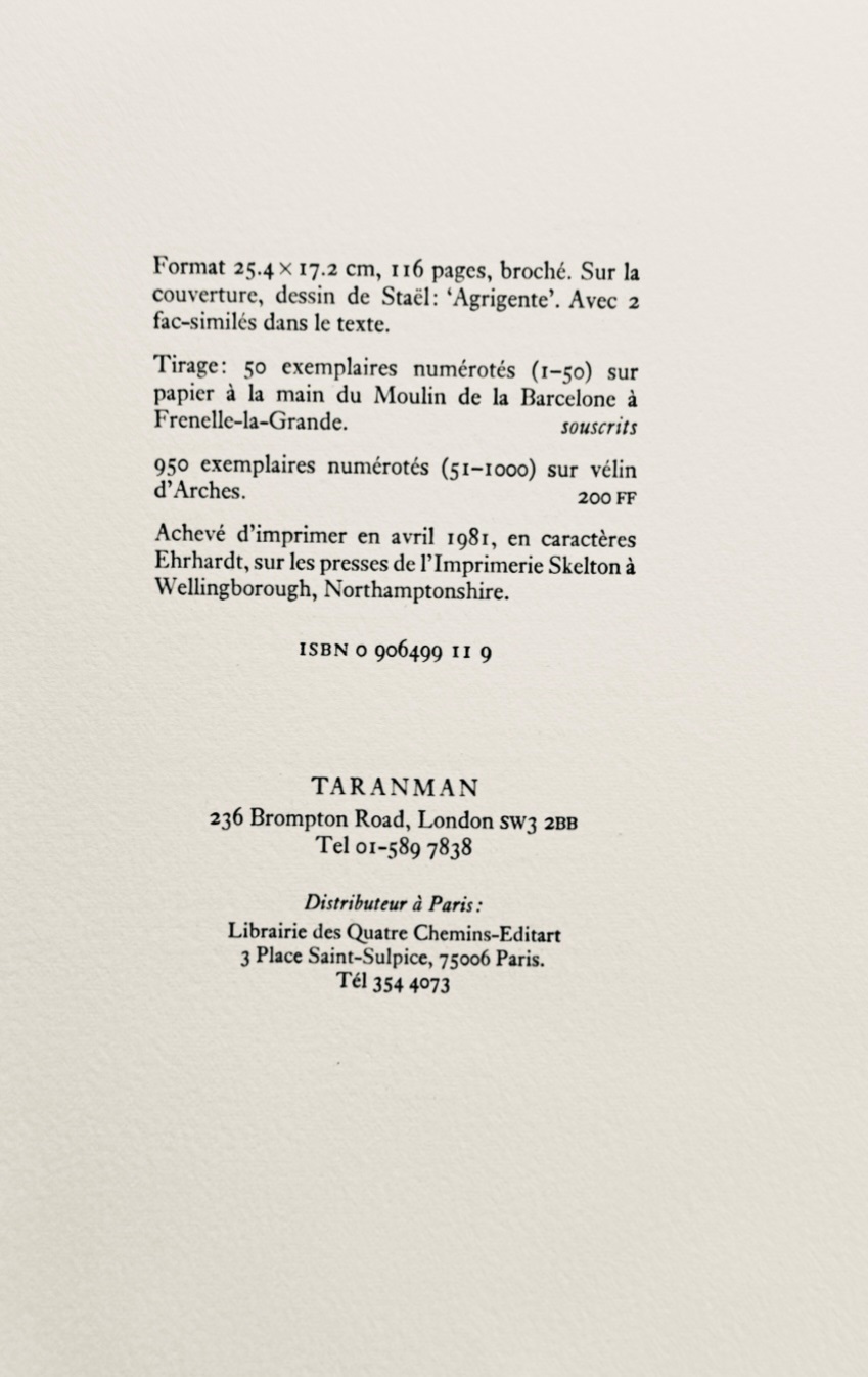 9/bis C- Nicolas de Staël - 12 October- 28 November 1981 –
