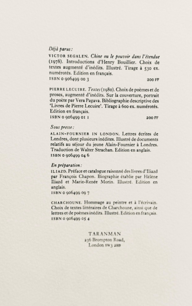 The publications of the Taranman Gallery: a personal note from David Gould –