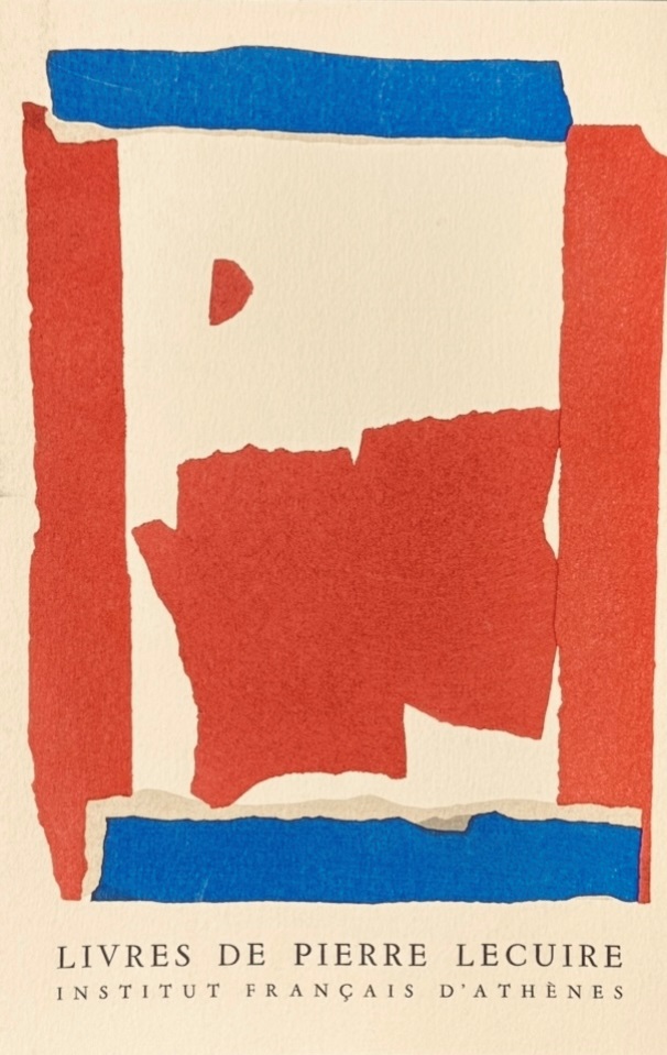 9/F - LIVRE DE PIERRE LECUIRE - Institut Français d'Athènes - Catalogue 1981 - Couverture: Nicolas de Staël, papier collé de la couverture des "tres de N. de Staël à Pierre Lecuire". Page de titre: Vera Pagava, "Poèmes métaphysiques", pointe-sèche. – Exemplaire personnel de Christopher Hewett avec l'amitié du poète. Paris 22 juillet 1981. Signé Pierre Lecuire